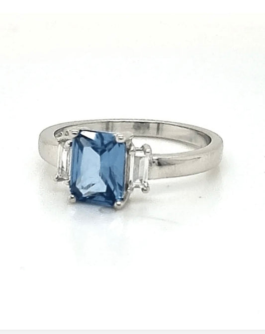 ANILLO DE PLATA 925 ITALIANA RODINADA Y AGUAMARINA