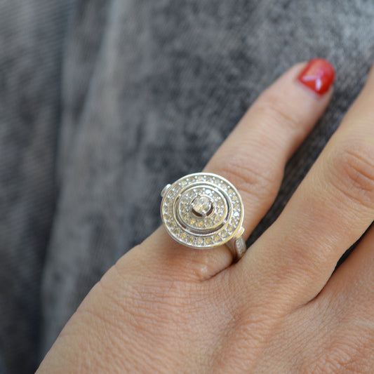 ANILLO VINTAGE NUBE GRANDE PLATA 925 ITALIANA RODINADA Y CRYSTALES