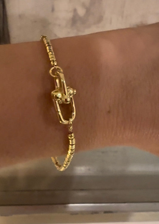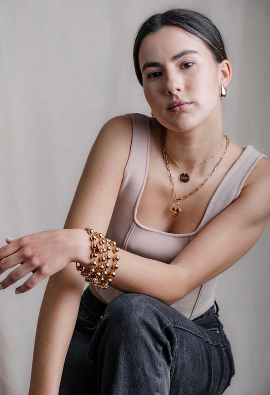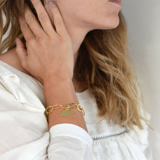 PULSERA ESLABÓN GRUESO Y CORAZÓN BAÑADO EN ORO