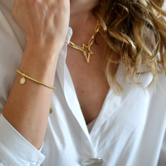 PULSERA ARGOLLA MOSTACILLA VIRGEN DE LOS RAYOS BAÑADO EN ORO